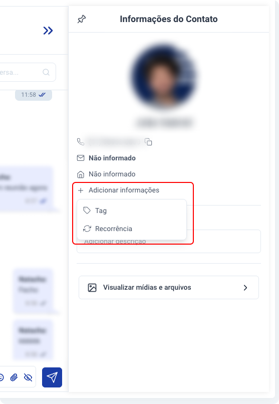 Clicando em “Adicionar informações” é possível criar uma tag e indicar a recorrência do contato.