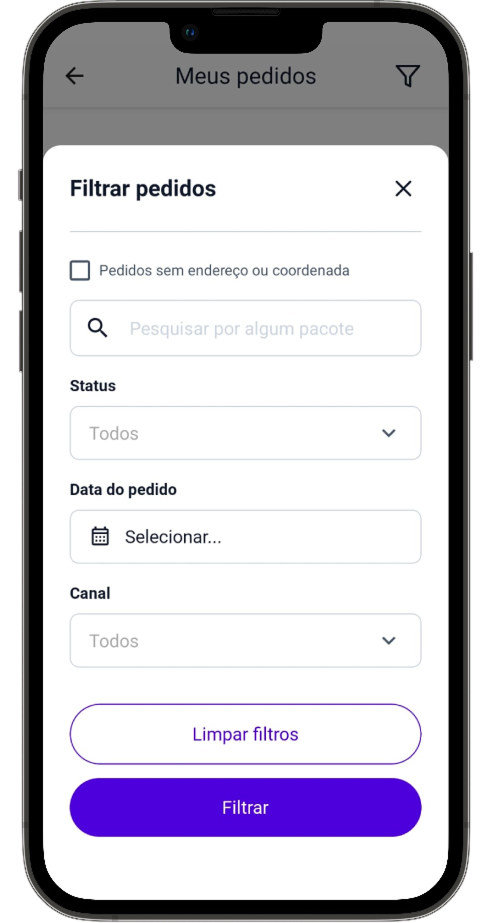 - Filtro de sem endereço: ao seleciona-lo, você filtrará apenas pedidos que estão sem endereço ou coordenadas.