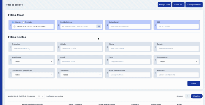 💡 Por enquanto, essa funcionalidade está disponível apenas na tela de Todos os Pedidos. Estamos trabalhando para incluir em mais aplicações!