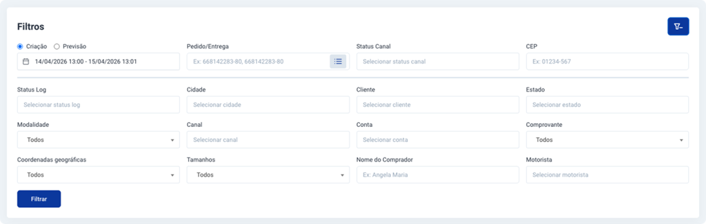 Algumas páginas no painel da Log Manager apresentam uma grande quantidade de dados e informações, tendo por consequência diversos filtros para buscar resultados mais específicos. Em algumas situações, exibir todos os filtros disponíveis pode não ser a melhor opção, pensando no dia a dia da operação.