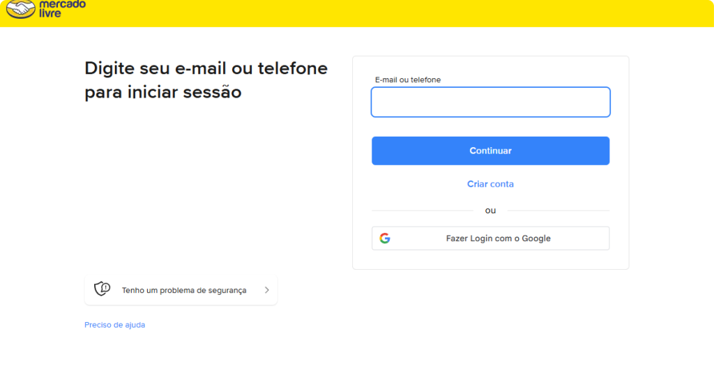 3. Você será redirecionado para a página de login do Mercado Livre. Faça login com sua conta se necessário.