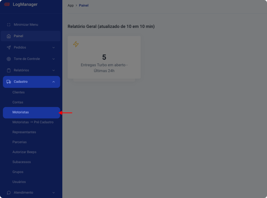 Acesse Cadastro > Motoristas pelo menu lateral.